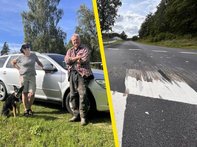 Margareta Renström Lindhe och Anders Lindhe kör en helt vanlig kombi – vars bägge bakfjädrar rök vid det nya farthindret vid Hammarvallen i Flen.