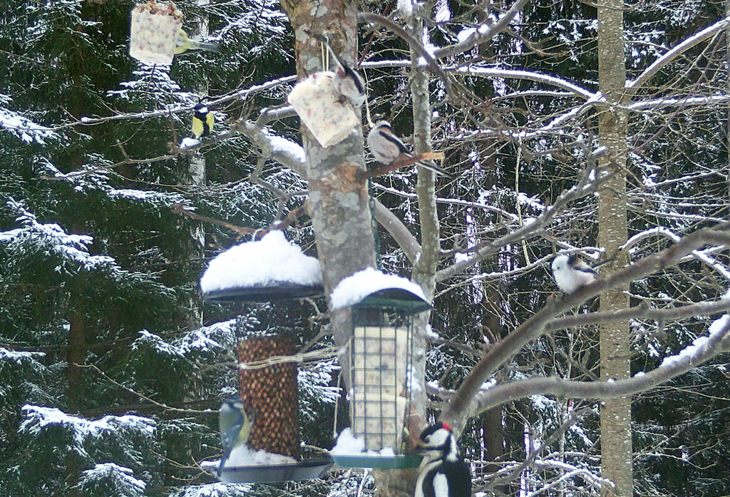De hade bullat upp med det vanliga, talgbollar, frön och nötter under helgen 23–26 januari när fågelräkningen pågick. Eva Evjen räknade och rapporterade in fåglarna som åt vid klubbens två matställen.